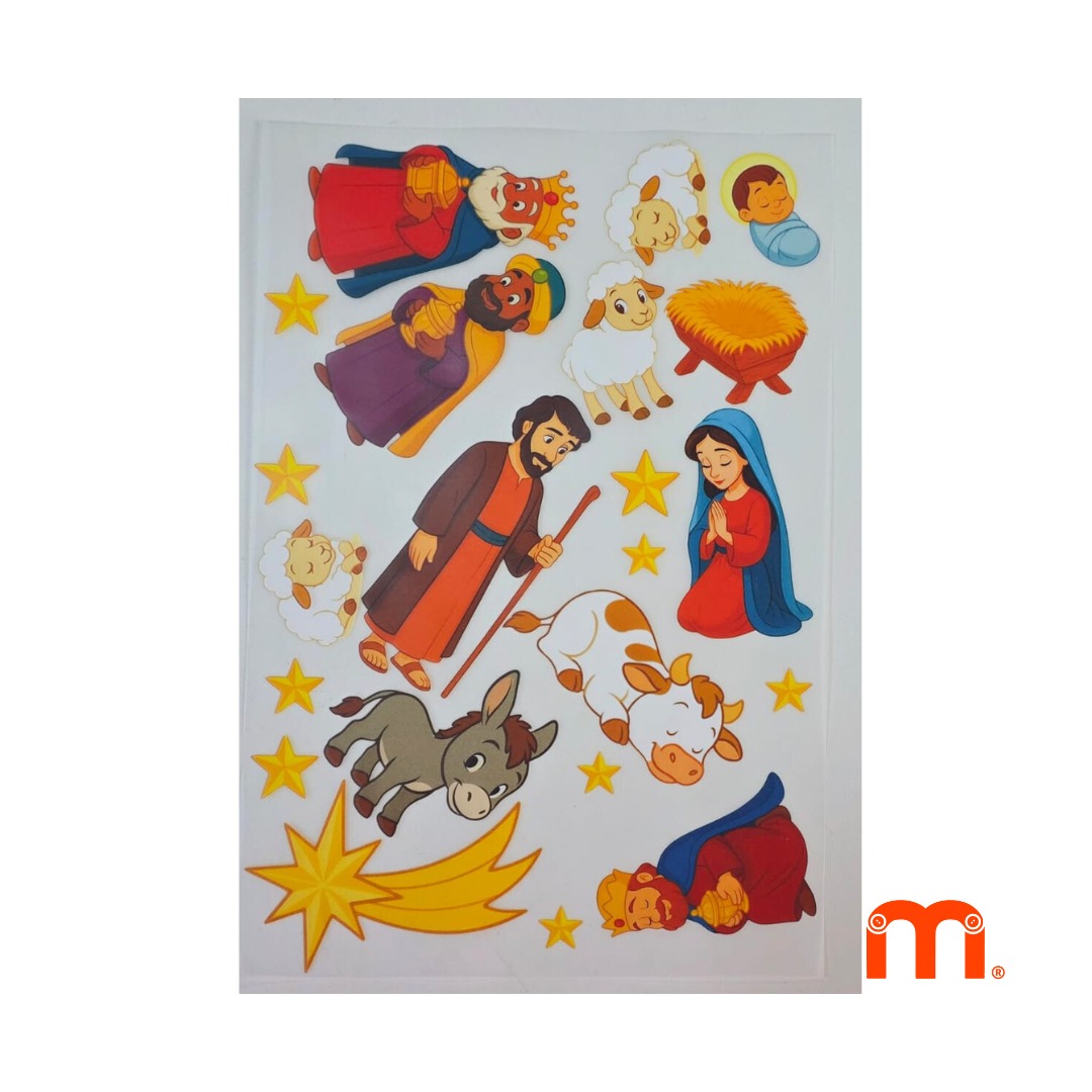 A cartela termocolante do Presépio Natalino é totalmente compatível com os moldes do Presépio Moleque Arteiro, trazendo todos os personagens e elementos clássicos dessa cena encantadora: Maria, José, o Menino Jesus, os Reis Magos, o burrinho, a vaquinha, ovelhas e estrelas.